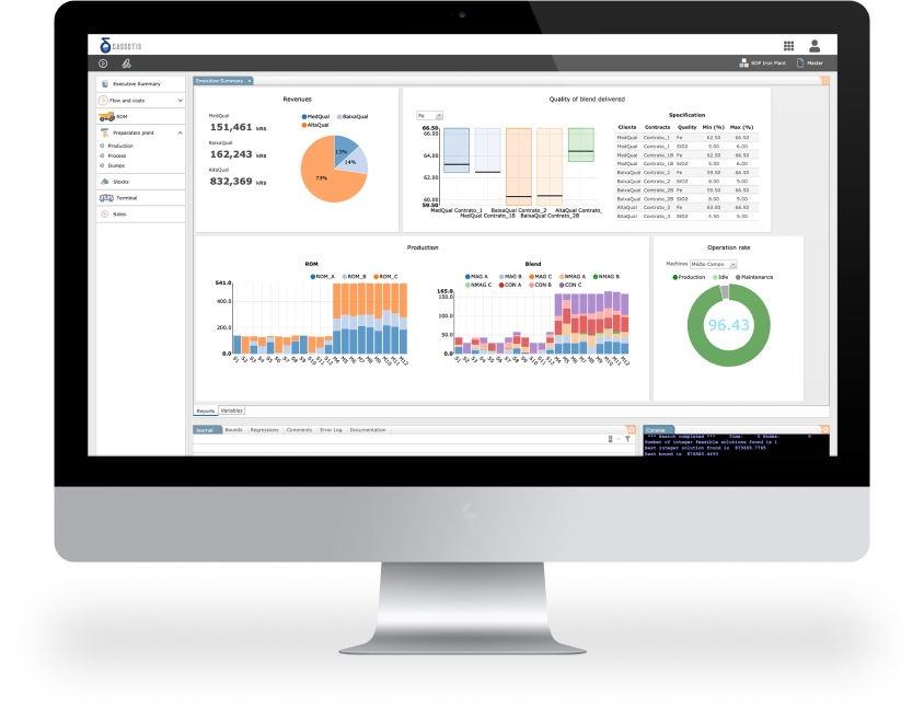 Esta solución se implementa durante un proyecto realizado por consultores de Cassotis. El trabajo combina técnicas de Investigación Operativa con Machine Learning para representar el proceso de producción y optimizar la toma de decisiones en la minería. Usando técnicas de agrupamiento (clustering) y clasificación, Cassotis desarrolla modelos predictivos de materias primas disponibles y su interacción con variables de proceso. Estas relaciones encontradas en los datos alimentan el modelo matemático. La solución final se encarga de encontrar la configuración óptima de las variables de decisión para maximizar sus ganancias.